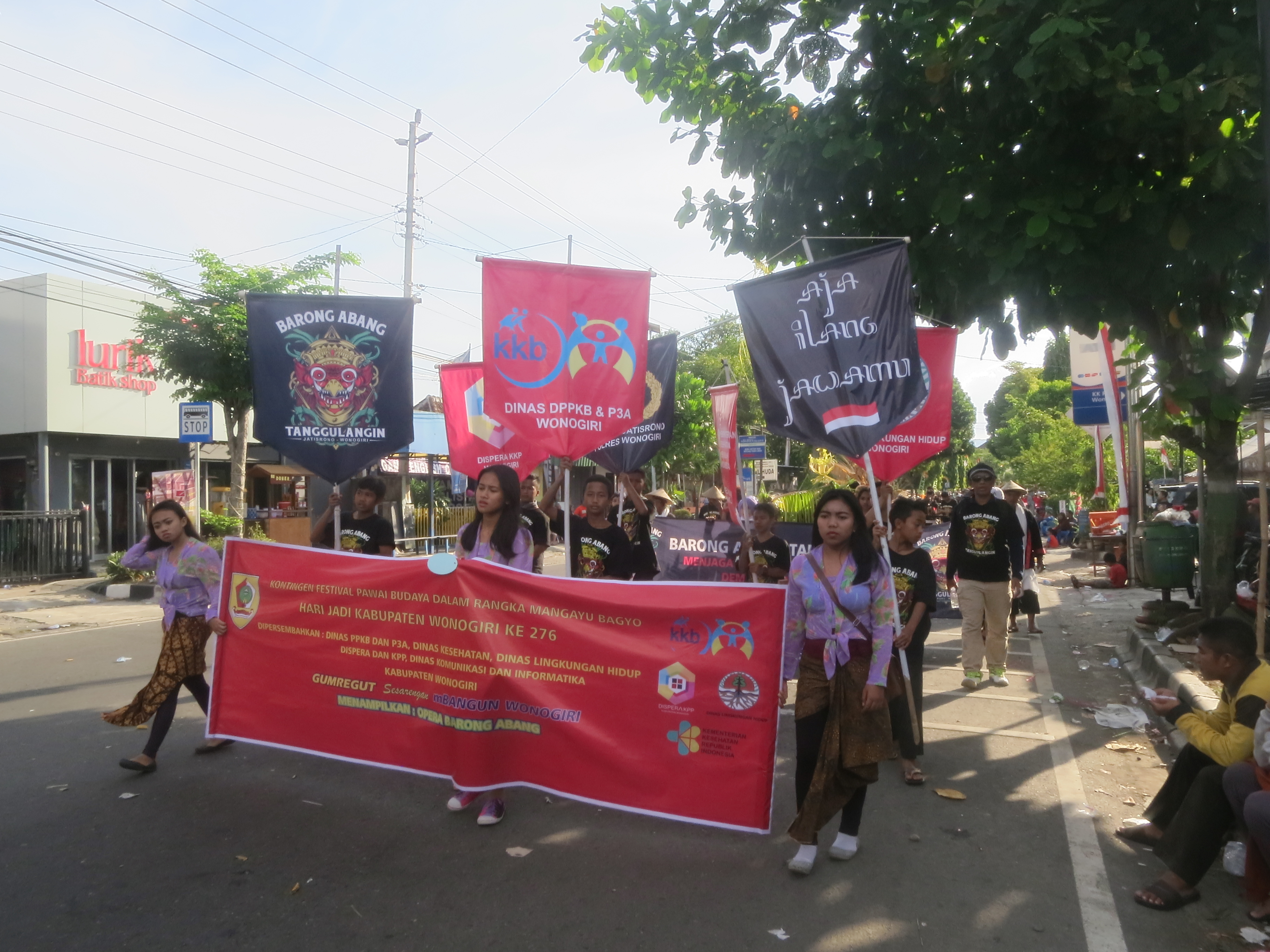 Minggu 21 Mei 2017, Dinas PPKB dan P3A, Dinas Kesehatan, Dinas Lingkungan Hidup, serta Dispera dan KPP Kabupaten Wonogiri mempersembahkan Opera Barong Abang dari Desa Tanggulangin Kecamatan Jatisrono dalam rangka Festival Budaya Memperingati HUT Kabupaten Wonogiri Ke-276 Tahun 2017, yang diikuti sejumlah 70 personil Barong Abang dan terdapat kurang lebih 85 peserta Festival Budaya dari berbagai OPD, instansi sekolahan dan kecamatan yang ikut berperan serta memeriahkan Festival Budaya HUT Kabupaten Wonogiri Ke-276 Tahun 2017. Pelaksanaan Festival Budaya Wonogiri dimulai dari Lapangan Pringgondani Wonokarto Wonogiri dan finish di Lapangan Sukorejo Wonogiri.