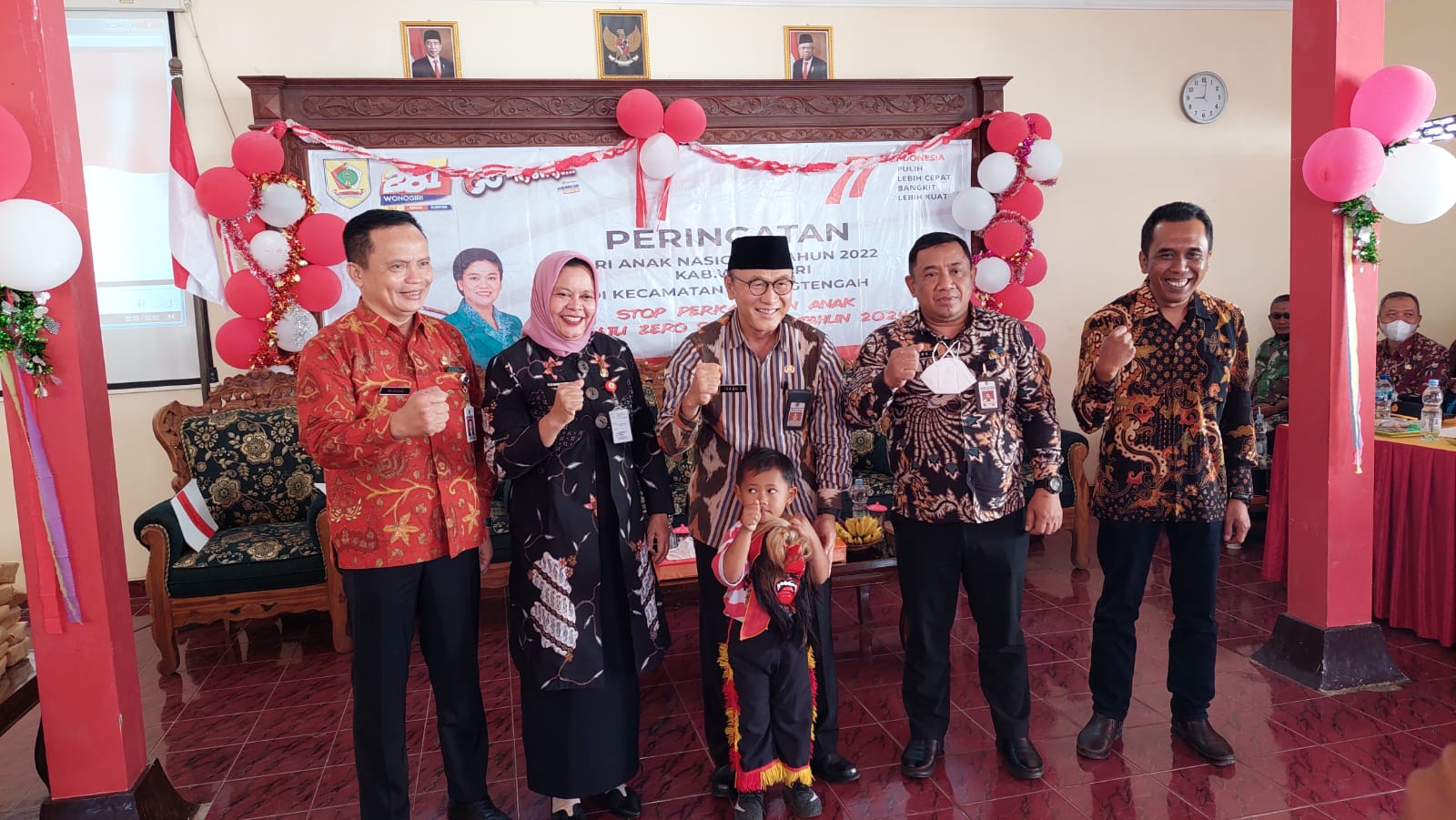 Puncak Kegiatan Hari Anak Nasional di Kabupaten Wonogiri Tahun 2022 dilaksanakan pada hari Kamis, 25 Agustus 2022 di Kecamatan Karangtengah dengan tema "Stop Perkawinan Anak Menuju Zero Stunting Tahun 2024". Berikut Acara Peringatan Hari Anak Nasional :