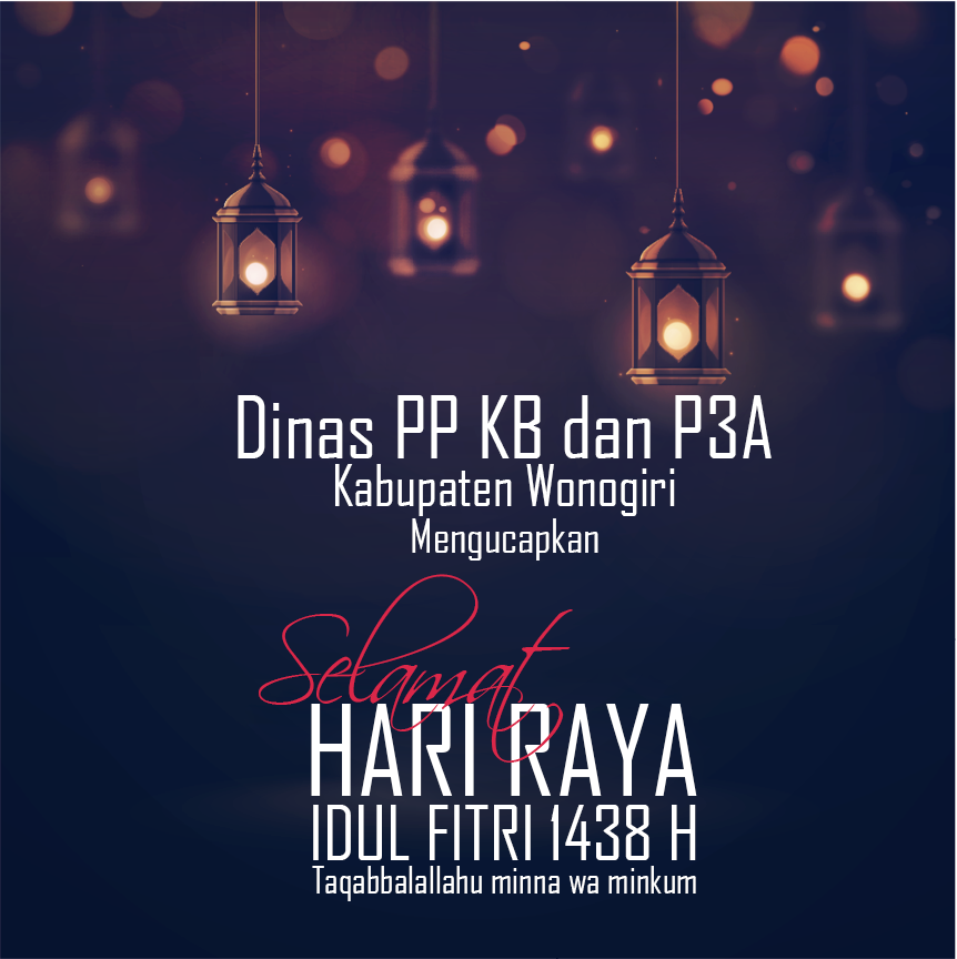 Segenap karyawan dan karyawati Dinas PPKB dan P3A Kabupaten Wonogiri mengucapkan Selamat Hari Raya Idul Fitri 1438 H. Taqaballahu Mina wa Minkum.