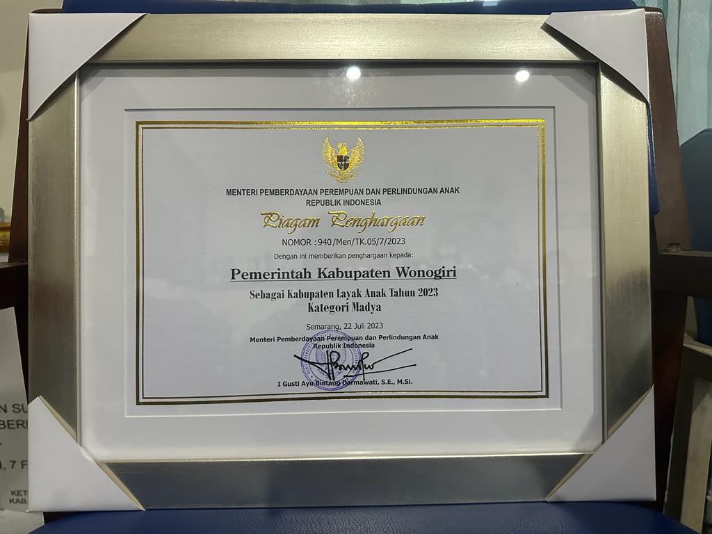 PIAGAM PENGHARGAAN KABUPATEN LAYAK ANAK PREDIKAT MADYA TAHUN 2023